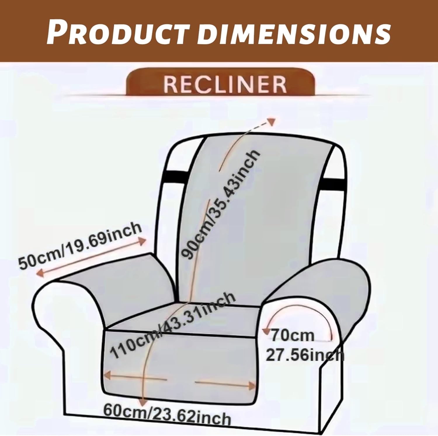 Description: Experience ultimate comfort and protection with this 1 Set Recliner Chair Cover, meticulously crafted from thick rabbit plush faux furs to a luxuriously soft and warm seating surface for your recliner chair. This plush recliner cover is tailored to provide a secure fit for a wide range of recliner seat sizes, combining style and practicality to safeguard your furniture from pet hair, spills, and everyday wear. Ideal for families with children and pets, the soft recliner cover creates an inviting and cozy environment while its fabric resists damage and extends chair lifespan. Installation is effortless thanks to the stretchable design, and the cover is easy to maintain as it is fully machine washable, retaining its plush texture over time. Elevate your home décor with this functional and stylish slipcover that not only enhances comfort but also provides a reliable shield for your recliner against scratches and dirt, making it an essential addition for pet owners and comfort seekers alike. Features:. Recliner Chair Cover. -Color: Coffee. -Material: Polyester. -Size:. Armrests: 70*50 cm/27.6*19.7inch. Backrest: 90*60 cm/35.4*23.6inch. Seat Cushion: 110*60 cm/43.3*23.6inch. Note:Manual measurement, please allow slight errors on size.The colors may exist slight difference due to different screens. Package Including 1 Set Recliner Chair Cover(2 x Armrests, 1 x Backrest, 1 x Seat Cushion)