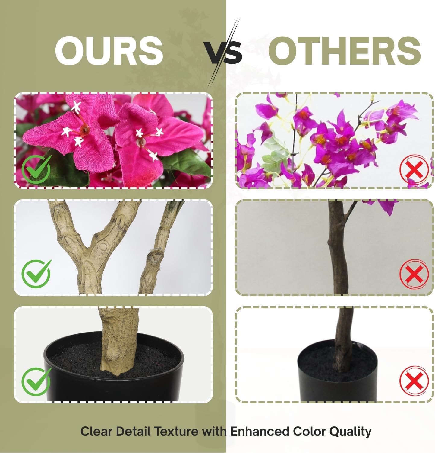 Bring color and elegance to your space with this 6FT Artificial Bougainvillea Tree, designed to capture the charm of real flowering plants without the maintenance.Featuring a creative structure and carefully crafted details, this faux bougainvillea showcases realistic blossoms and lush foliage that remain vibrant year-round. Its tall 6-foot profile makes it an eye-catching accent for indoor spaces such as living rooms, bedrooms, offices, entryways, or retail environments.The tree is easy to assemble thanks to its detachable design and arrives in a compact, space-saving package. Once set up, simply adjust the branches to achieve your desired fullness. With no watering, trimming, or special care required, this artificial tree offers long-lasting beauty with minimal effort.Whether used as a decorative floor plant or a statement piece in modern interiors, this potted faux bougainvillea tree adds natural charm and color to any setting.