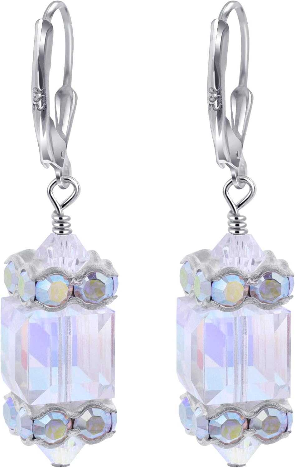 Lovely pair of Sterling Silver Dangle Earrings with Rondelles accented Cube Shape Austrian Crystals Comes with a secure Lever back in .925 Sterling Silver. Length of this Earrings is 1.5 Inch Long