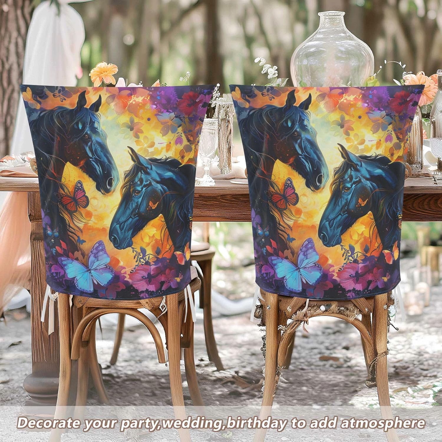 Chair Cover Material made of polyester,comfortable and soft to touch,reusable and suitable for long term use Features easy to install and remove, tie rope design at the bottom,machine washable Stylish Chair Decoration With beautiful pattern,it can be used for family party/ birthday party/wedding/ holiday party to add atmosphere, also can be used for chair decoration in living room, dorm, kitchen dining room,bedroom to bring protection to the chair while avoiding stains to dirty the chair back. Easy To Care Machine washable, Not washing with hot water, Not bleaching