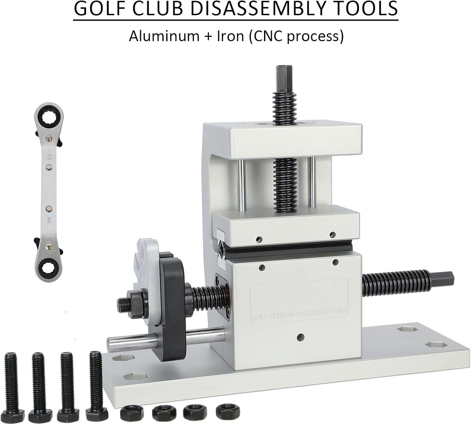Golf Club Shaft Clamp, Golf Repair Tool Shaft Extractor, Shaft Separator Club Grip Remover, Professional Golf Head Removal Tool, Golf Workshop Supplies, Golf Shaft ClampA shaft remover is an essential tool for any golf repair shop. This tool is designed to efficiently separate the clubhead from the shaft, making club repairs quick and easy. The shaft remover is ideal for removing old or damaged shafts, facilitating replacement and customization.Its robust construction ensures long-lasting durability, while its ergonomic design keeps it comfortable even during extended use. Whether you're a professional club fitter or a DIY enthusiast, this shaft remover is the ideal tool for all your club repair needs.Specifications:Name: Golf Club Shaft ExtractorMaterial: Aluminum + IronProduct Dimensions: 25×8×16cm (9.84×3.14×6.29in)Packaging Dimensions: 30×30×14cm (11.81×11.81×5.51in)Net Weight: 3.22kgGross Weight: 4.2kgPackage List:1× Club Shaft Extractor1× WrenchOther AccessoriesNotes:1. Due to different manual measurements, please allow a 1-2cm difference in size.2. After receiving the goods, if you find any problems, please contact us in time and we will help you solve it as soon as possible!
