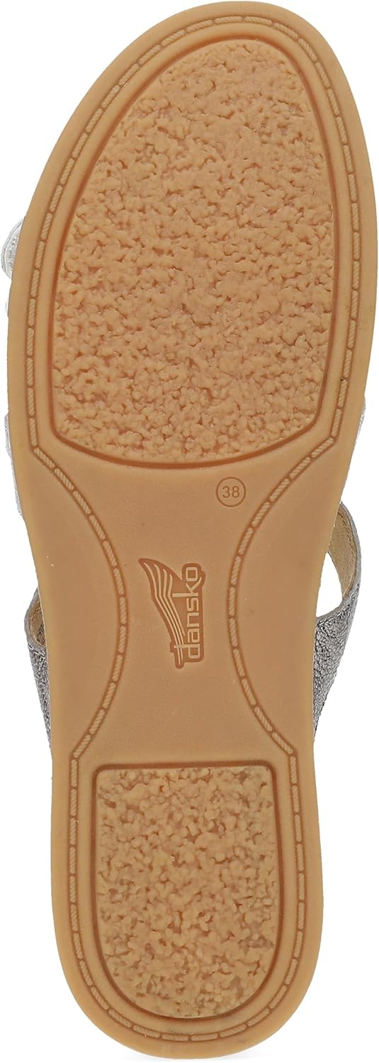 The Dansko Campbell is your new go-to for effortless elegance. Crafted with premium leather and a nubuck upper treated with 3M Scotchgard, this sandal resists stains while exuding a soft, luxurious feel. The chrome-free suede sock lining ensures breathable comfort, while the cushioned PU footbed provides energy-returning support for all-day wear. Designed with a lightweight and flexible TR rubber outsole, every step feels natural and smooth. The three hook-and-loop closures offer customizable adjustability, ensuring a perfect fit for every foot. Featuring an open-toe design that's equal parts chic and breezy, Dansko Campbell is your go-to sandal for versatility and comfort.