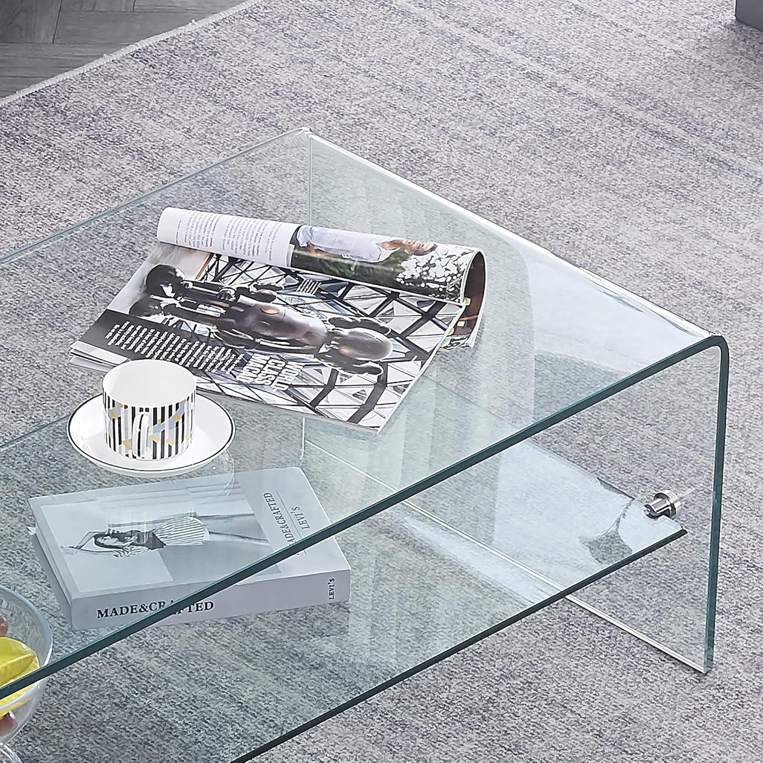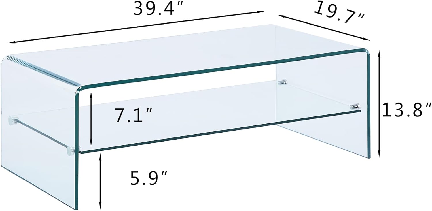 Glass Coffee Table with Shelf Modern Coffee Table for Living Room, Outdoor CoffeeTable Specifications: Product Type:Glass Coffee Table with Shelf Material: Tempered Glass Color:Clear Product Dimension: 39.4*19. 7*13. 8 inches Package Content: 1 xglass coffee table