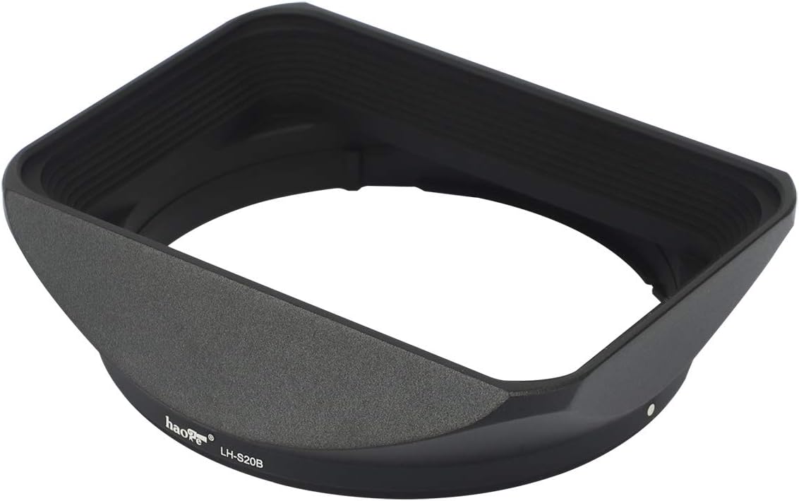 The LH-S20B Square Metal Lens Hood is designed for Sony FE 20mm F1.8 G SEL20F18G Lens. This bayonet-mount lens hood shades the lens from stray light, prevent or limit lens flare, improving your contrast and image quality. Provide additional protection to the camera and lens from accident scratching. The main body of the lens hood is made of high quality aluminum alloy, and the bayonet is made of synthetic resin, which will not damage your lens. Besides, the lens hood is equipped with a cap. Features: Helps Block Stray Light and Reflections. Provides Greater Protection to Lens. Compatible with Lens: Sony FE 20mm F1.8 G Lens ( SEL20F18G ) ( Note: it can't be used for other lenses ) Package included: 1 x Haoge LH-S20B Square Metal Lens Hood with Cap