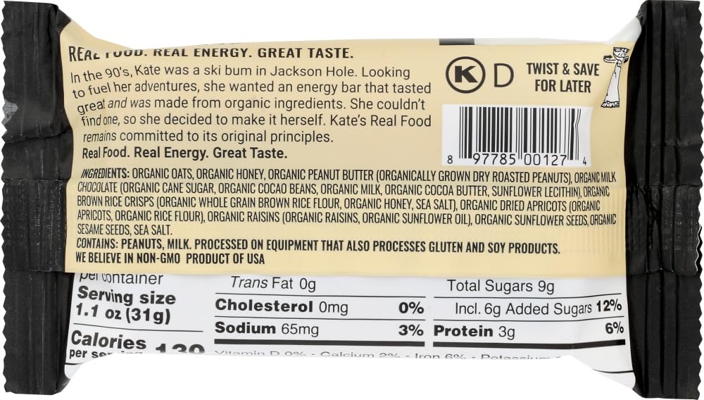 KATES REAL FOOD Organic Peanut Butter Milk Chocolate Tram Bar 12 Count, 2.2 OZ