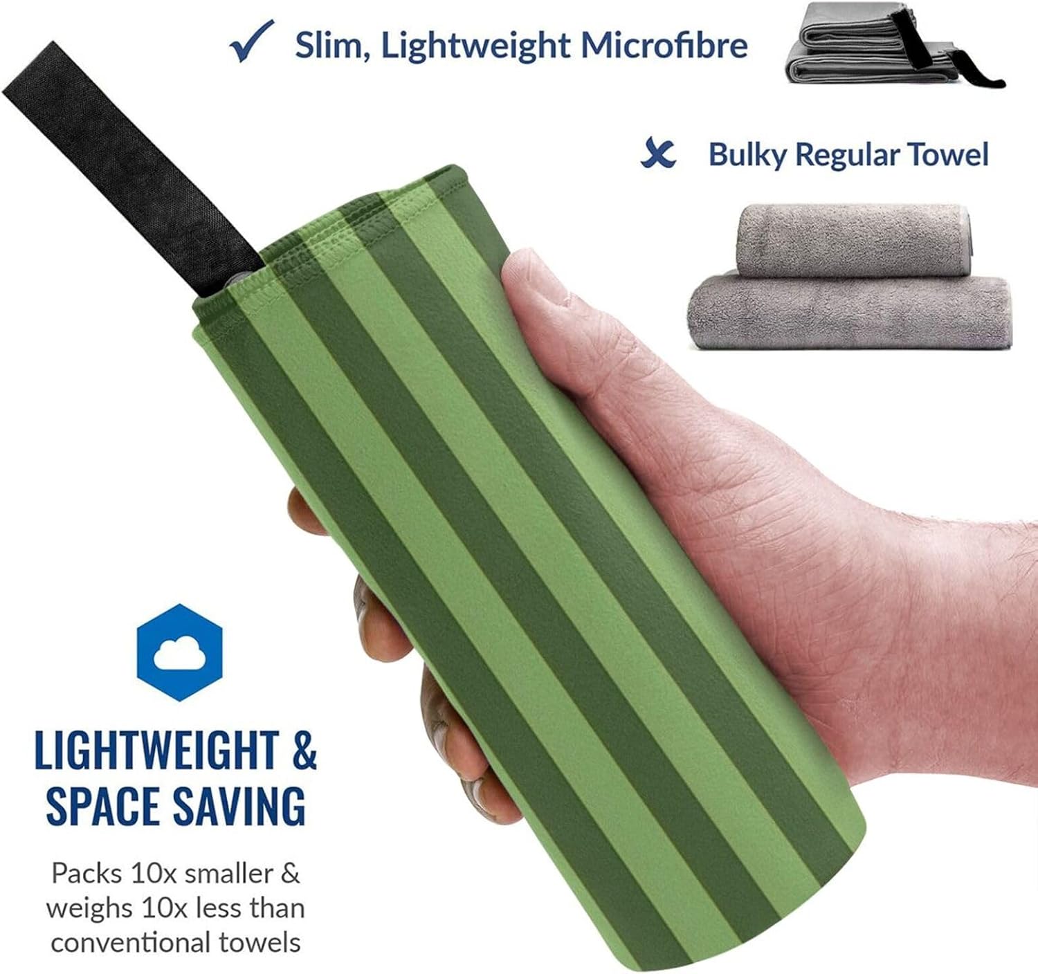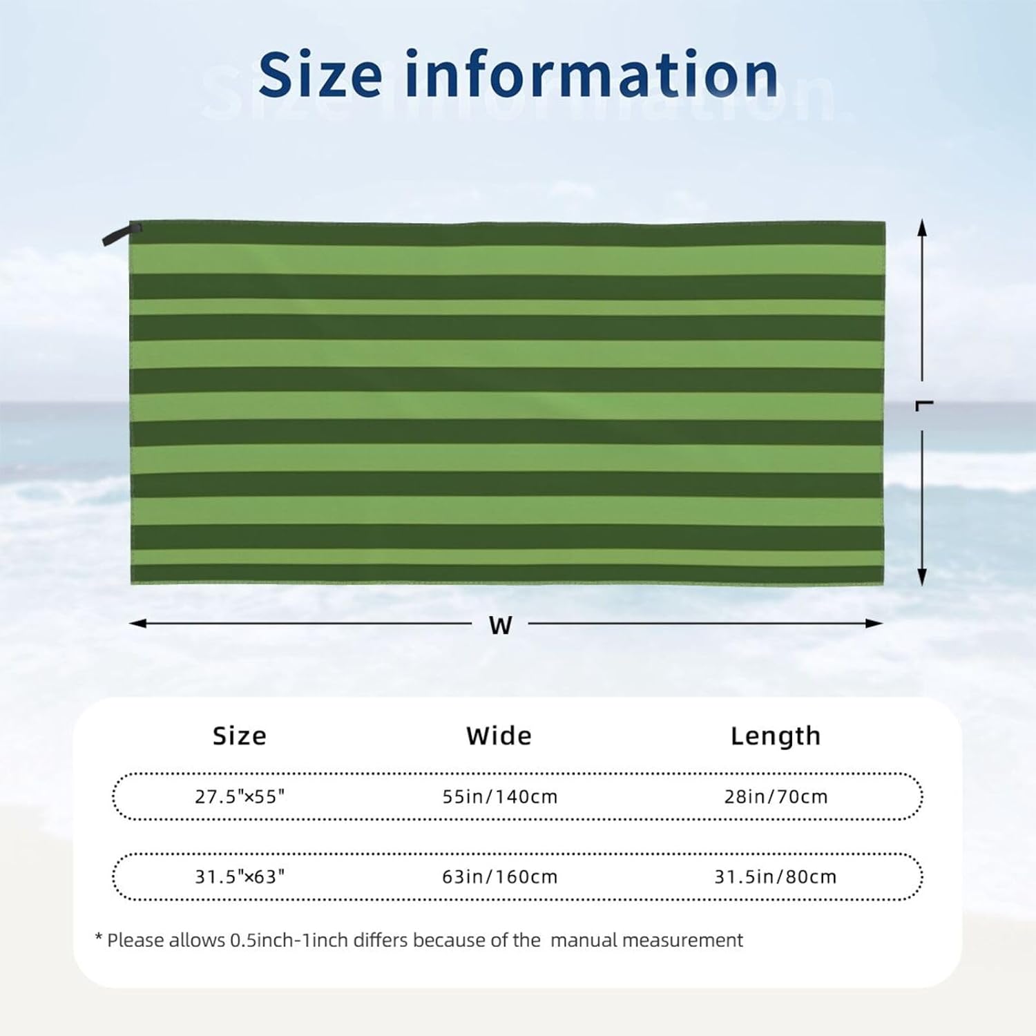 designClassic Green Striped compact towel for camping are designed with one-sided printing. The towels are equipped with special packaging bags and carabiners, which are convenient for packaging and hanging, and can be hung anywhere to dry quicklymaterialcompact towels for swimming is made of microfiber, which is more absorbent than standard towels, dries quickly, is lightweight, and small enough to easily fit the towel into a gym bag or backpackscene cotton towel for beach carabiner on the bag, can be attached or packed into your bag, the beach towel can also be used as a sports towel, travel towel, yoga towel or used as a beach, bathing, swimming pool, swimming, boating, sunbathing, mats for spa, sauna, water park, climbing, fitness, yoga, travel, camping, hiking, picnic, travel, outdoor and sports, etccomponentbeach blanket for swimming have buckle webbing, easy to hang and air dry, pvc packaging bag, equipped with a carabiner, easy to store and carrywashinglightweight towel for swimming machine washable, wash before first use, just hand wash or machine wash, air dry