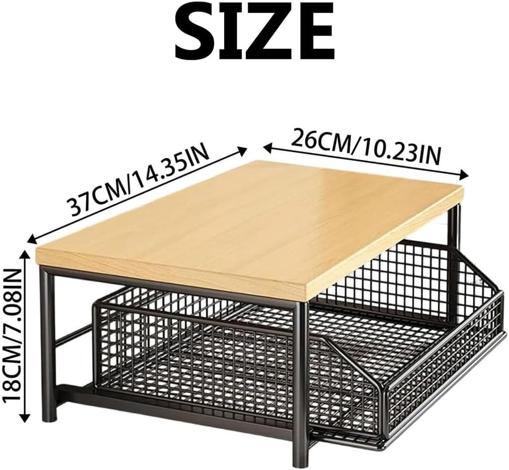 Organize your kitchen effortlessly withthis 2-tier countertop shelf. Features sliding drawer, wire basket, and sturdyhardwood construction—perfect for small spaces, coffeestations, and clutter-free cooking.Feature: Maximizes vertical kitchen space for smallcountertops efficiently.Smooth sliding drawer stores fruits,utensils, or spices.Sturdy hardwood shelf supports microwaves,coffee makers safely.Compact design fits bathrooms, offices,dorms, any counter.Easy assembly with smooth surfaces foreffortless cleaning.SpecificationName: KitchenCountertop Organizer with Drawer & Wire BasketSize: 37 × 26 × 18 cm /14.6 ×10.2 × 7.08 inWeight: 1.5kgMaterial: Iron+ WoodPackageincludes1PC * ShelfWith Drawer for Kitchen Counter1PC * TowelNote: 1. There may be errors due to manualmeasurement. 2. Due to differences in monitors andlighting, the pictures may not show the actual color of the item. Thank you foryour understanding. Our Promise to You: We truly value your feedback and are hereto provide you with friendly, helpful service every step of the way. Our goalis to ensure that you enjoy your purchase and enhance your life with ourhigh-quality products. Thank you for choosing us!