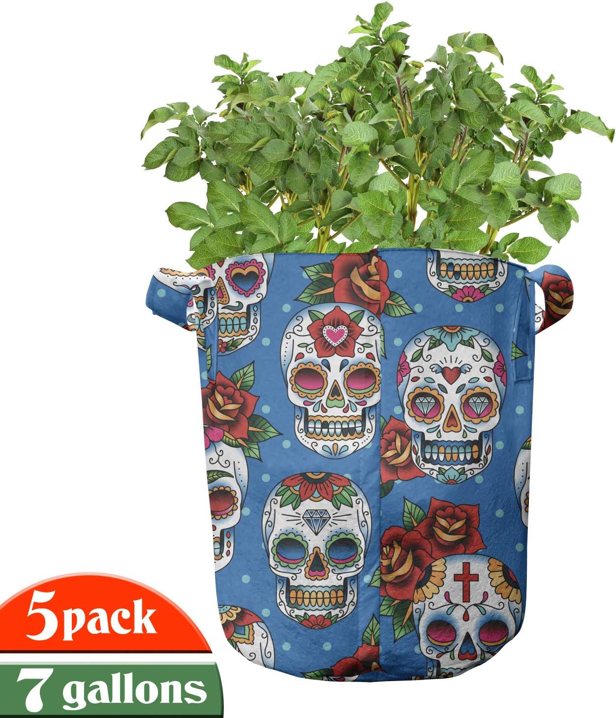 5 PACK - Printed grow pots. Size of the bags: 13.7" W x 12.6" L. 7 Gallon. Easy to move around. MADE FROM - High quality 100% thickened non-woven polyester fabric. Perfect for container gardening. FEATURES - Heavy-duty handles. Stain & water-resistant. Can be used up to 3 years. No toxic dyes. INDOOR GARDEN - Grow a variety of plants like tomatoes, peppers, various greens, root vegetables. PRINTED - With state of the art digital printing technology. Long-lasting bold colors & clear image. Do you want to learn the decorative way to grow healthy plants? The answer is; these printed fabric pots pack of 5! This portable fabric bag is made from nonwoven polyester to grow any kind of plant. These bags are environment-friendly and allow your roots to breath. With its smart design, there is more room to grow for your flowers, plants, beans, garlics, patatoes, salad leaves, eggplants, peas, onions, beetroots, tomatoes, mint, sage, herbs, strawberries, cress, chilies and peppers. Allows your plant's roots to breathe. Develop strong roots and keep them well with these printed bags. Move your bag full of soil and plants with large sturdy handles; minimalize the risk of transplant shock. Keep your plants warmer in the winter and cooler in the summer. Improve overall root structure and provide better use of water and nutrients. Besides being that much useful, these planting bags are also decorative! Add color and style to anywhere you like with thousands of different patterns. As well as decorating your garden, you can create a stylish accent for indoor use, too. Our portable fabric grow bags are washable, easy to clean for reuse. Save money and save your plants by these fabric pots. The digital images we display have the most accurate color possible, however due to differences in computer monitors, we cannot be responsible for variations in color between the actual product and your screen.