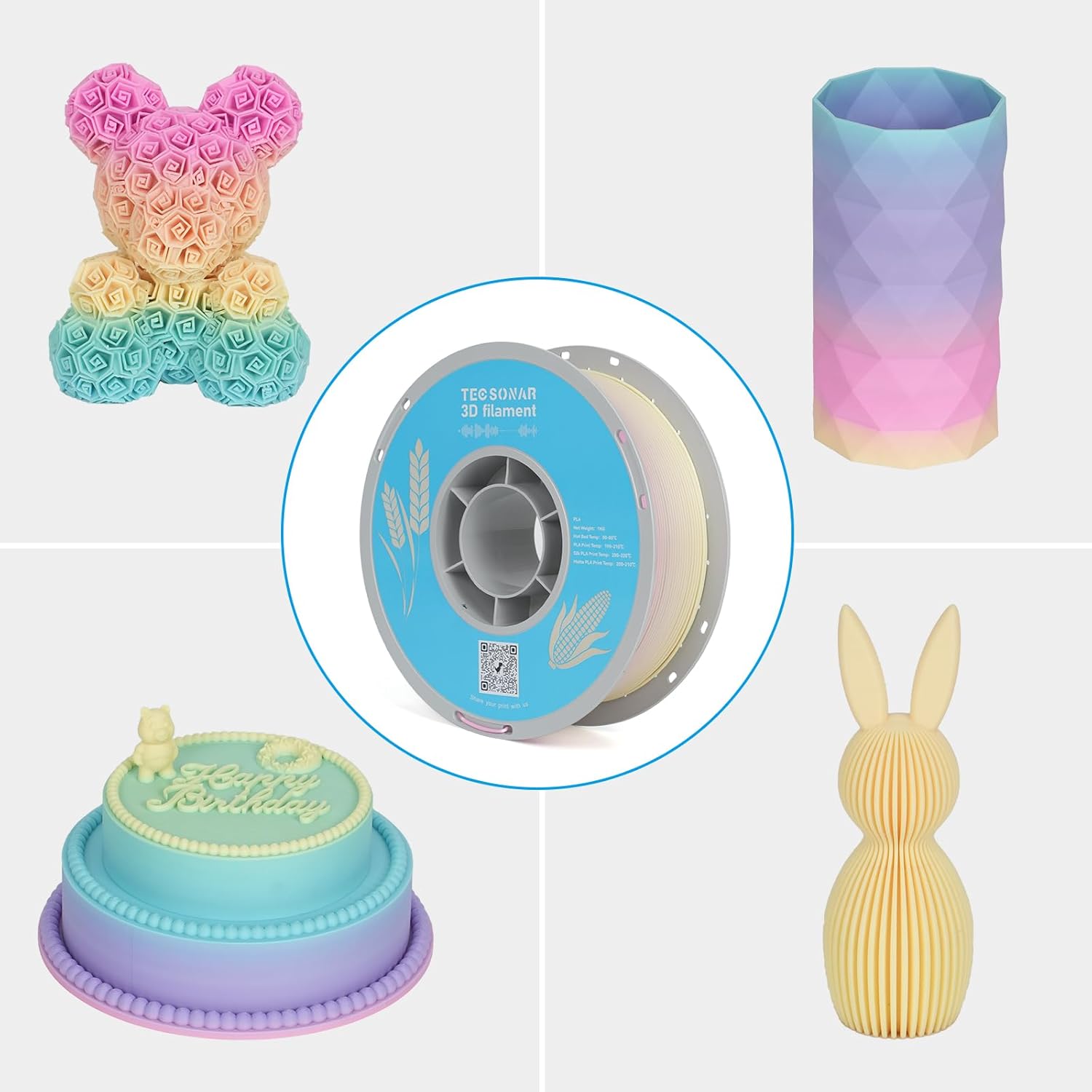 TECSONAR Matte Rainbow PLA 3D Printer Filament, 1KG Spool(2.2lbs) 1.75mm PLA Fast Color Change 3D Printing Material, Multicolor Gradient Filament
