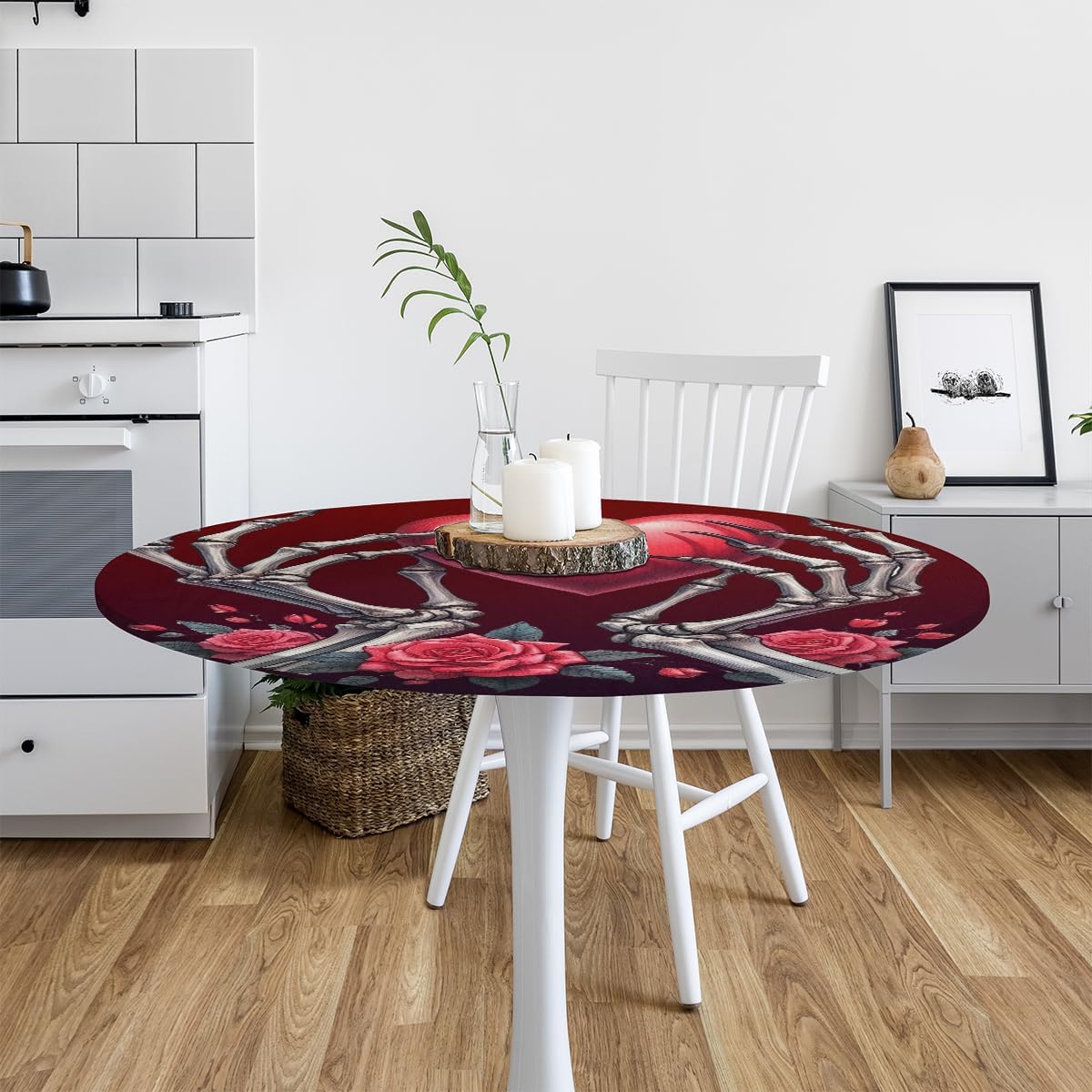 valentine round tablecloth with elastic edge small fitted circle table cover wipeable round table cloth for indoor outdoor patio Dining Kitchen decorOur store offers a variety of DIY-themed table covers round designs for you to choose from, including animal, floral, beach, marble, funny, and cute styles.Product Size: Fits 40-44inch or 45-50inch round tables made of wood, glass, or metal.Product Included: 1 fitted round table cloth.Product Features:The elastic edge ensures a secure fit, preventing the valentine tablecloths from slipping or sliding.Child-friendly design prevents kids from easily pulling it off.Our circle table cover is made of durable polyester fabric that is fade-resistant and tear-resistant wipeable, waterproof, and oil-proof. Liquids such as drinks, soup, or sauces won't penetrate the surface—just clean with a damp cloth.Machine washable on a delicate cycle with mild detergent. Do not bleach. Iron on low heat from the back if needed.this circle table protector is suitable for dining tables, kitchens, restaurants, buffet dinners, picnics, banquets, coffee tables, weddings, parties, birthdays, cafes, barbecues, camping,patio and both indoor and outdoor use.Gift Idea:This valentine fitted tablecloth makes a thoughtful gift for moms, dads, sisters, brothers, grandparents, spouses, children, friends, and all other loved ones. Choose from a variety of fun, stylish, and surprising designs to suit any personality.